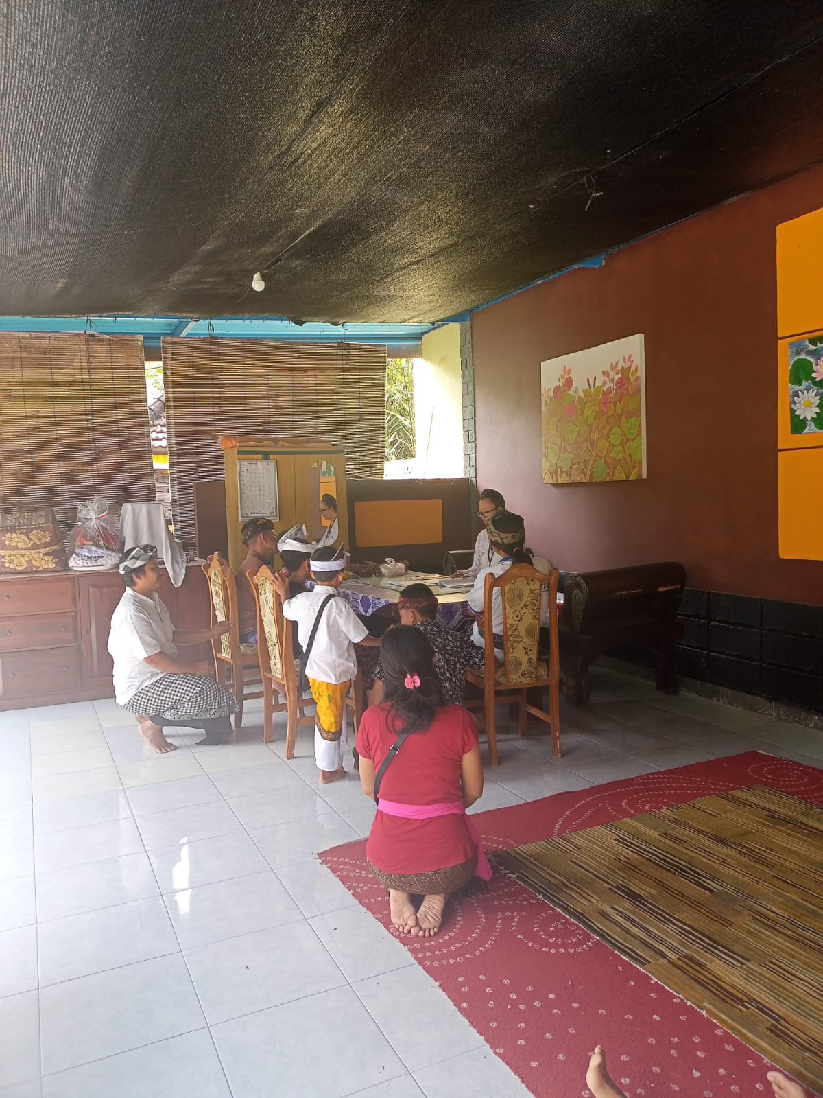 Penyuluh Agama Hindu Non PNS Kecamatan Manggis wilayah binaan Desa Adat Angantelu, I Gede Adnyana, S.Pd memfasilitasi warga tangkil ke Geria Taman Suranadi dalam rangka konsultasi pewacakan bayuh oton dan ngelungsur palukatan.